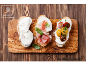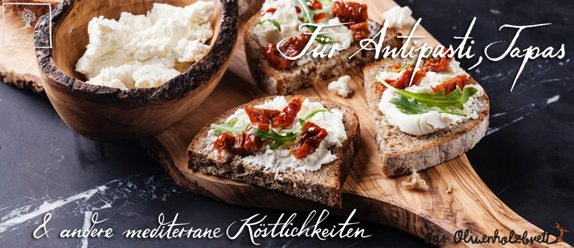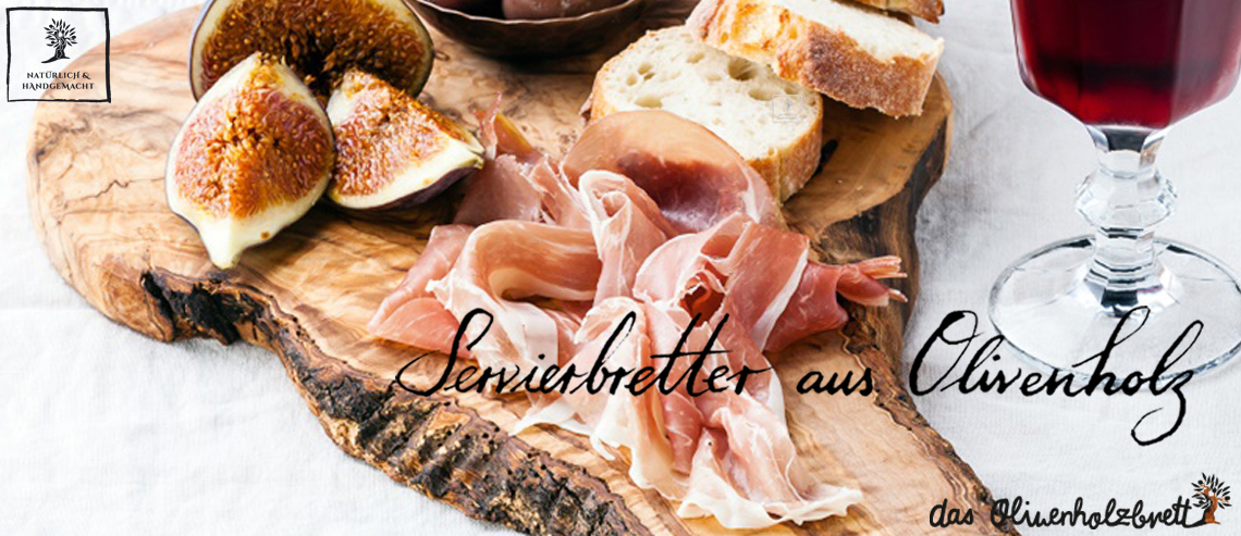 Olivenholzbrett im Naturschnitt, rustikal oder Landhaus Stil, für Schinken, Käse und andere herzhafte Leckereien