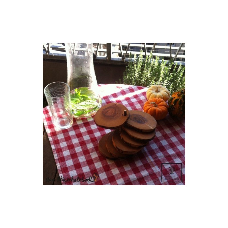 Moderne Untersetzer, rund udn im Naturschnit, incl Halter, aus Olivenholz