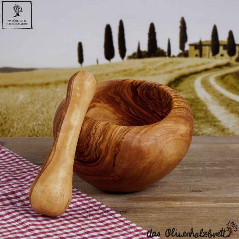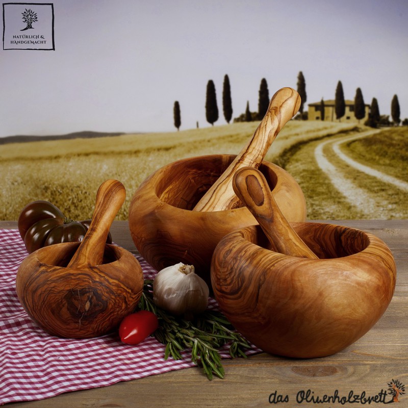 Olivenbäume werden erst für den Handel freigegeben, nachdem sie keine Früchte mehr tragen. Also ein Vorbild in der Nahrungsmittelgewinnung und eine perfekte Synergie zwischen Mensch und Natur. Jeder Mörser wird nach traditionellen und qualitativ höchsten Methoden handgefertigt und gabschließend eingeölt. Also ein wunderbares Stück Natur und Lebensfreude...Perfekt geeignet zum zerkleinern von Kräutern und Gewürzen oder einfach nur als wunderschöne mediterrane Dekoration in der Küche ...
