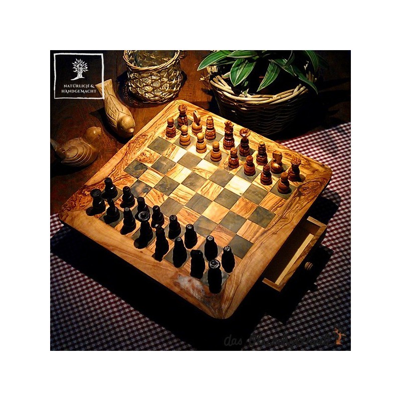 Schachspiel, viereckig Olivenholz