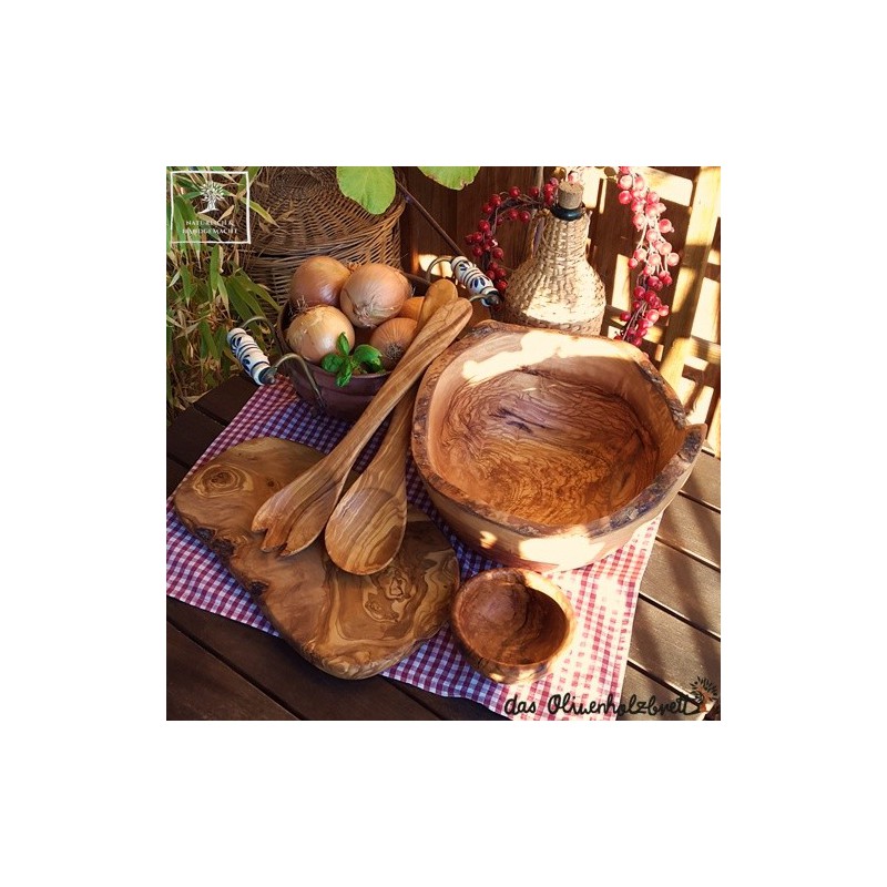 Olivenbäume werden erst für den Holzhandel freigegeben, nachdem sie keine Früchte mehr tragen. Also ein Vorbild in der Nahrungsmittelgewinnung und eine perfekte Synergie zwischen Mensch und Natur. Jedes Produkt wird nach traditionellen und qualitativ höchsten Methoden handgefertigt und abschließend eingeölt. Also ein wunderbares Stück Natur und Lebensfreude......Perfekt geeignet als dekoratives Brotzeit-, Frühstücks-, Vesper- oder Schneidebrett...